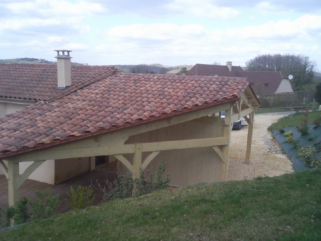 Maison en ossature bois de plein pied. Située dans la vallée de la Dordogne à 800m de la dordogne à 4kms de Beynac, 8kms de St Cyprien et de Castelnaud. Vue sur le chateau de Beynac et des Milandes