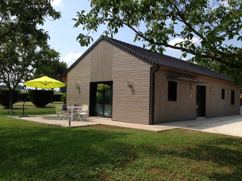 Maison en ossature bois de plein pied. Située dans la vallée de la Dordogne à 800m de la dordogne à 4kms de Beynac, 8kms de St Cyprien et de Castelnaud. Vue sur le chateau de Beynac et des Milandes